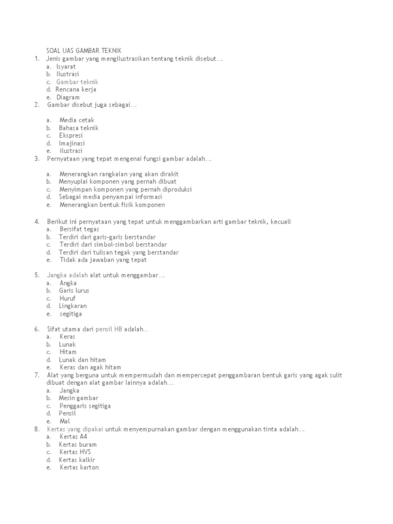 Doc 322285243 Soal Gambar Teknik Pilihan Ganda Finis Docx Rafi Alfa Academia Edu from 0.academia-photos.com Maybe you would like to learn more about one of these? We did not find results for: Check spelling or type a new query. Jenis gambar yang mengilustrasikan tentang teknik disebutâ¦.